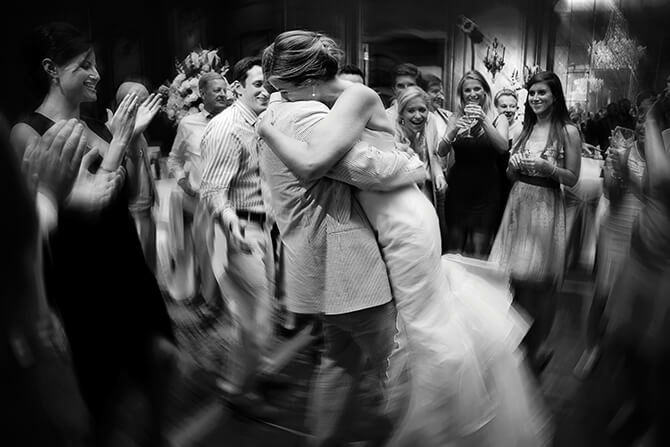 “Some parents and older guests might not want to stick around through the wilder late-night partying part of the evening. During dinner is a great time to appeal to their tastes,” Black says. “Go for slower classics, from the time when they got married. It’s a great way to make that connection with everyone in the room.” Because, if the celebrating is going strong later on, “and all of a sudden Mom comes and says to the DJ, ‘Play Sinatra,’ you’ve just lost the party atmosphere.”