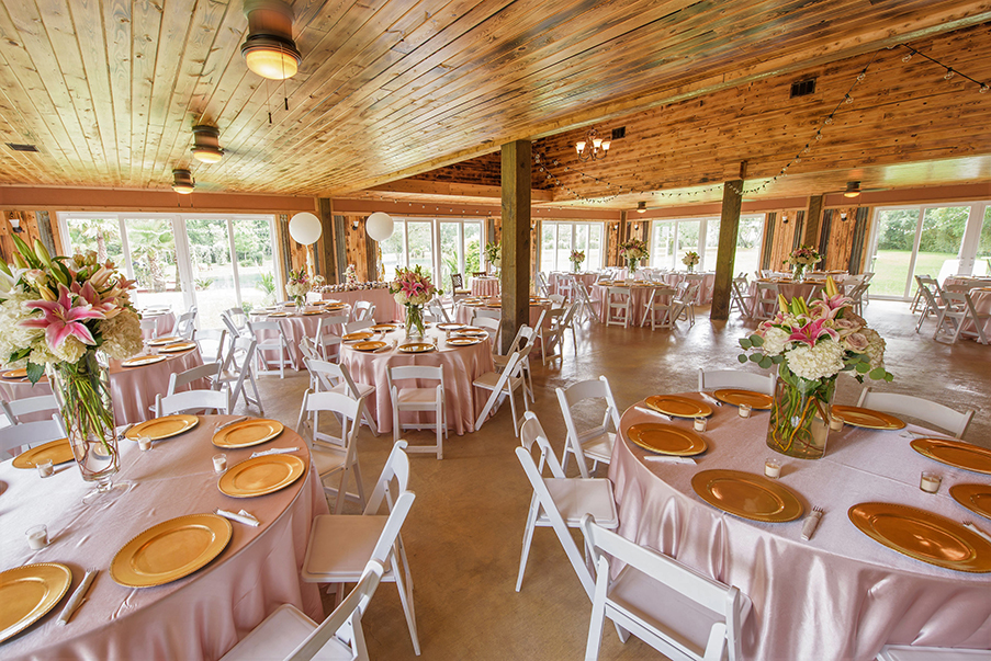 After the ceremony, guests need only shift to the adjacent ballroom, where they can enjoy more stunning outdoor views while celebrating. “Wedding couples are busy people,” Love observes. “They juggle careers and sometimes kids, and are often working while trying to earn a degree, and they have less and less time to plan their weddings. We have been hosting wedding couples for over 11 years, and we provide everything, allowing the wedding couple to relax before and during their wedding day.”